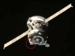 Корабль «Прогресс-МС 33» перед стыковкой. Выделено место нераскрывшейся антенны. Кадр из трансляции Роскосмоса тестовый баннер под заглавное изображение
