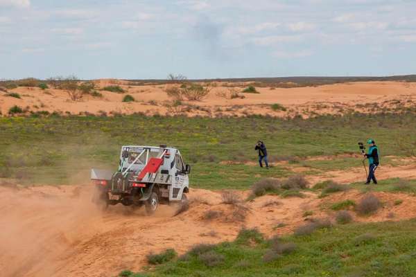 Спецучасток лёг на душу — чередовались скорость, пилотаж, песочница. У нас была поломка ходовой, но починили за час — обычно уходит два. Завтра будем навёрстывать. Михаил Шкляев пилот «ГАЗ Рейд Спорт» Астрахань традиционно трясёт грузовик после зимы. Был небольшой ремонт, не получилось показать хорошее время. Встречались быстрые участки, где можно отдохнуть. Довольны. Александр Шелудько штурман «ГАЗ Рейд Спорт»