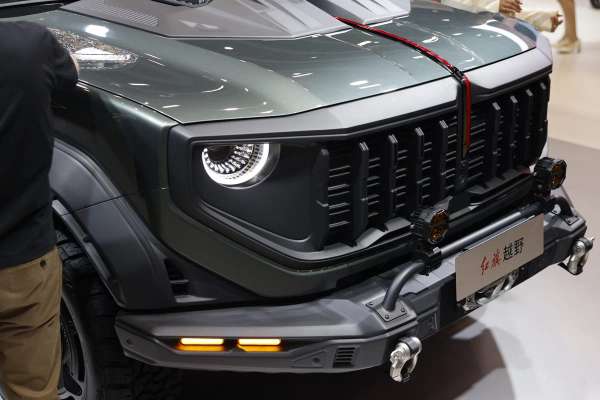 Разработана новинка по мотивам прошлогоднего концепт-кара Hongqi Off-Road. Она получила квадратный кузов с развитым внедорожным обвесом, в который китайские дизайнеры вписали ретростилизованные круглые фары и фирменную монументальную решетку радиатора Hongqi с красным «флажком» по центру. Образ дополняют угловатые выштамповки на крыльях, крупные вертикальные фонари, классические дверные ручки и разместившаяся на распашной багажной двери запаска. Впрочем, оформление машины может быть еще брутальнее. Специально для автовыставки китайское ателье Yunliang подготовило несколько спецверсий Off-Road (P567), оборудованных различными экспедиционными аксессуарами вроде багажника на крышу, складной лестницы, дополнительных кофров на задних стойках и усиленного переднего бампера с лебедкой.