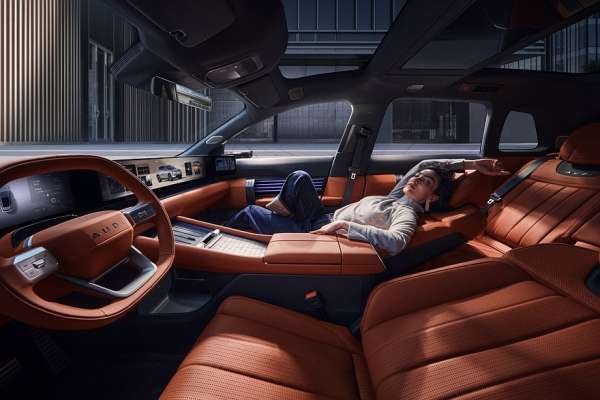 Кроссовер AUDI E7X будет доступен в пяти- или четырехместном исполнениях. Во втором случае задние сиденья разделяет массивная «тумба» с пультом. В обеих модификациях задние кресла имеют откидные подставки для ног. Разумеется, есть подогрев, вентиляция и массажер. В списке оборудования еще заявлены аудиосистема Bose с 26 динамиками (включая динамики в спинках передних кресел на уровне плеч и в подголовниках задних сидений) и меняющая степень прозрачности панорамная крыша. Наконец, в отделке интерьера применяются премиальные материалы – в частности, есть вставки из натурального дерева.