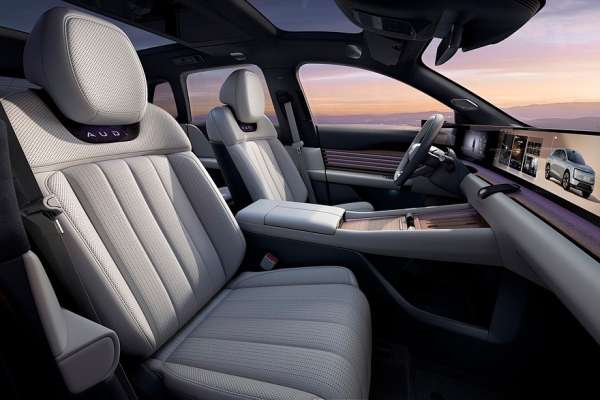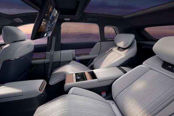 Как и снаружи, внутри кроссовер подражает универсалу AUDI E5 Sportback. В салоне E7X установлено табло во всю ширину передней панели. По бокам от него имеются дополнительные экраны, ведь для паркетника тоже предусмотрены камеры вместо традиционных наружных зеркал. Свой планшет есть и у задних пассажиров – он выдвигается из потолка, причем можно просто отдать голосовую команду. Мультимедиа – на базе искусственного интеллекта.