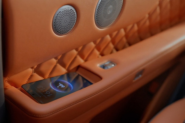 Внутри установлены отдельный приборный экран и гигантское табло, состоящее из двух тачскринов. На центральном тоннеле расположены одна площадка для беспроводной зарядки смартфона, ряд физических рычажков и подстаканники. В самом тоннеле спрятан бокс с функциями подогрева и охлаждения. В переднюю пассажирскую дверь и обе задние двери встроены собственные площадки для зарядки, причем с вентиляцией. Итого, у кроссовера аж четыре таких панели.