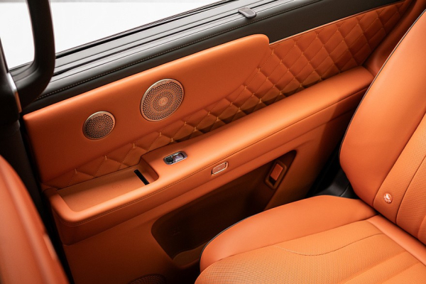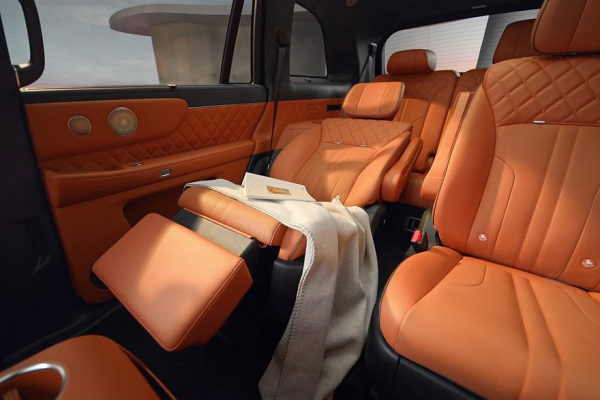 В торце тоннеля – сенсорный пульт для управления всевозможными настройками. У расположенного во втором ряду правого сиденья есть откидная подставка для ног. А в спинки передних кресел встроены столики. Разумеется, кресла также имеют подогрев, вентиляцию и массажер, плюс динамики в подголовниках. Наконец, для задних седоков предусмотрен отдельный крупный экран – как водится, он прикреплен к потолку.
