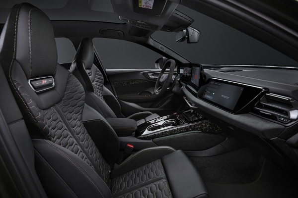 Интерьер доступен в различных вариантах отделки, он дополнен контрастной прострочкой в цветах Serpentine green (зелёный) и Brass (бронза). В салоне предусмотрен сенсорный дисплей MMI диагональю 14,5 дюйма, на него благодаря функции Audi driving experience выводится подробный анализ пройденных маршрутов, а на треке она позволяет сохранять время прохождения участков.