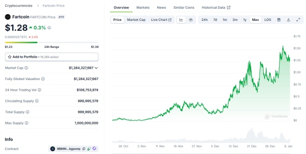 Скрин с торгов: Рыночная капитализация Fartcoin от 18.10.2024 года