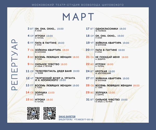 Популярный артист театра и кино Андрей Ургант поделится театральными байками и стихами, а выдающийся музыкант Андрей Косинский исполнит свои знаменитые хиты. Выбор площадки для Андрея Урганта глубоко символичен. Своё трепетное отношение к Театру Всеволода Шиловского артист объяснил с присущей ему откровенностью. «Моё отношение к Всеволоду Шиловскому определила фраза, сказанная им много лет назад: «Боже, Андрюша, как я люблю твою маму». А сегодня его театр позволяет мне с расстояния почти в метр сказать людям: «Как же я люблю Всеволода Николаевича, как горд стоять на сцене, где работал он и где играют его ученики», – сказал Андрей Ургант. – Как здорово, что, протянув руку, я могу прикоснуться к моим зрителям. Когда в зале сто человек – тут не соврёшь. Поэтому я буду работать здесь».