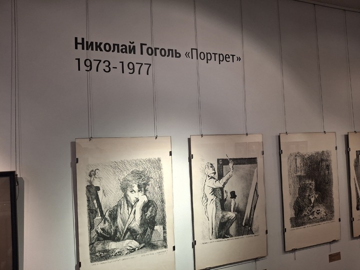 Следующий блок иллюстраций — художественное осмысление Кибриком героических былин (хоть сейчас ставь любую картинку на обложку школьной тетради, как того желает Роскомнадзор!). Добрыня, Забава, Илья Муромец, Микула Селянинович – в общем, фулл-хаус персонажей русских эпических песен. Далее мы видим созданные в 1970-х иллюстрации к «Портрету» Гоголя, может быть, чуть менее известные широкому ценителю. Несомненно, прекрасны и небольшие по формату цветные литографии Евгения Кибрика к сказкам Пушкина.