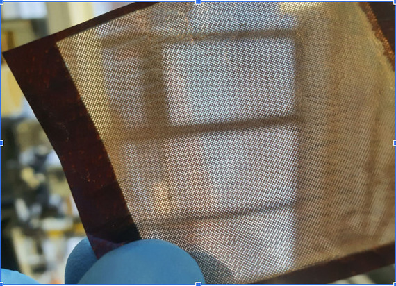 Фото: МФТИ Медная фольга после перфорации лазерным оборудованием с отверстиями диаметром от 250 до 500 мкм.