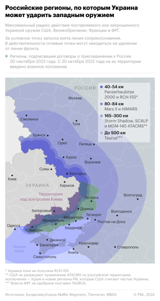 Украина уже наносит западным оружием удары вглубь России, признавал в начале лета руководитель Главного управления разведки Украины Кирилл Буданов. Глава МИД России Сергей Лавров в мае заявил, что американское оружие уже используется для ударов за пределами зоны боевых действий. По словам Путина, удары Украины западным оружием по территории России «близки к агрессии».