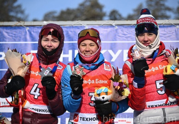 Наталия Шевченко, Кристина Резцова и Анастасия Халили. Фото: Союз биатлонистов России