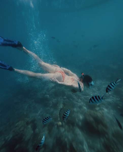 Особенно эффектным стал кадр, сделанный во время подводного плавания. Викторию запечатлели в бикини, ластах и маске, плывущую среди ярких морских обитателей.